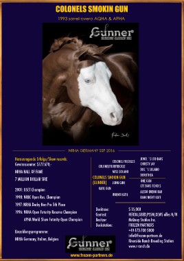 NRHA Germany, Italien, Belgien Decktaxe: $ 15,000
