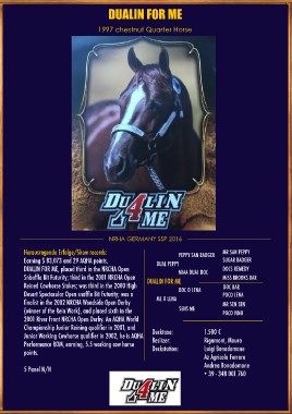 Championship Junior Reining qualifier in 2001, and Decktaxe: 1.500 €