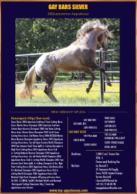 Jr. Cutting National Reserve Champion 2004 Appaloosa Decktaxe: 1.000 € exl. Frozen fee