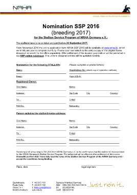 From November 2016 the online application form NRHA SSP 2016 will be available at www.nrha.de, which